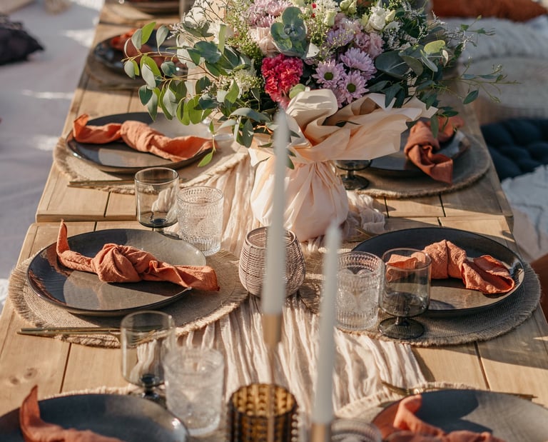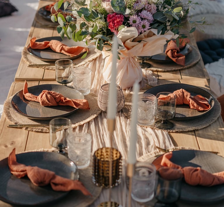 Chaque détail vous invite à la détente dans cette ambiance délicieusement bohème, parfaite pour partager un moment chaleureux et mémorable.